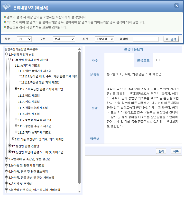 파일:(20251209 main) 통계분류포털-경제분류-특수분류-농축산식품산업분류-검색-분류내용보기(해설서).png
