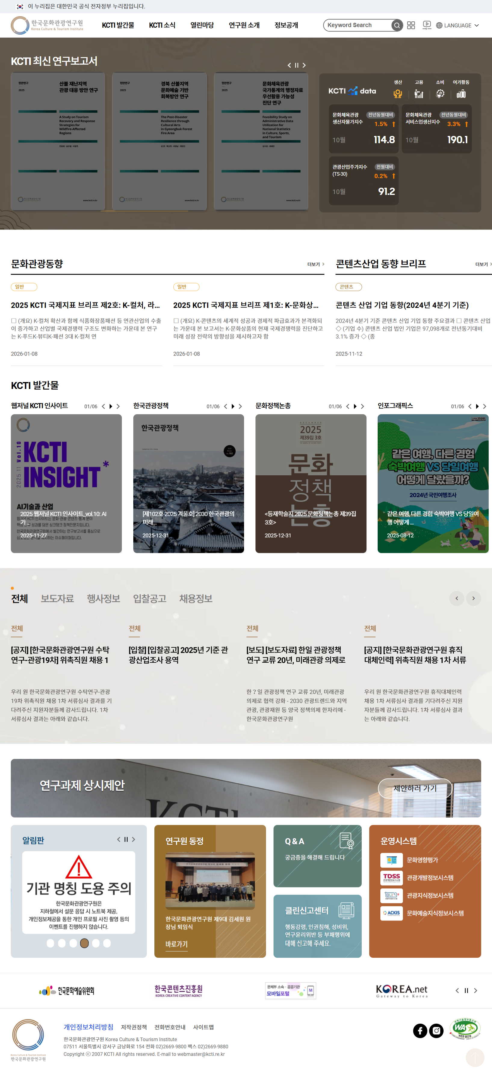 AGT_259 한국문화관광연구원 2026년 1월 11일 홈페이지 캡처 화면 URL: https://www.kcti.re.kr/