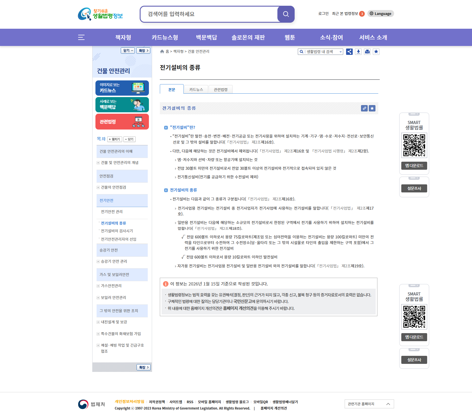 | 2026년 3월 20일 (금) 20:39 | (20260222 other)찾기쉬운 생활법령정보-책자형-건물 안전관리-전기안전-전기안전 관리-전기설비의 종류-본문.png (파일) | 360 KB | Kos3 | 1 | ||
