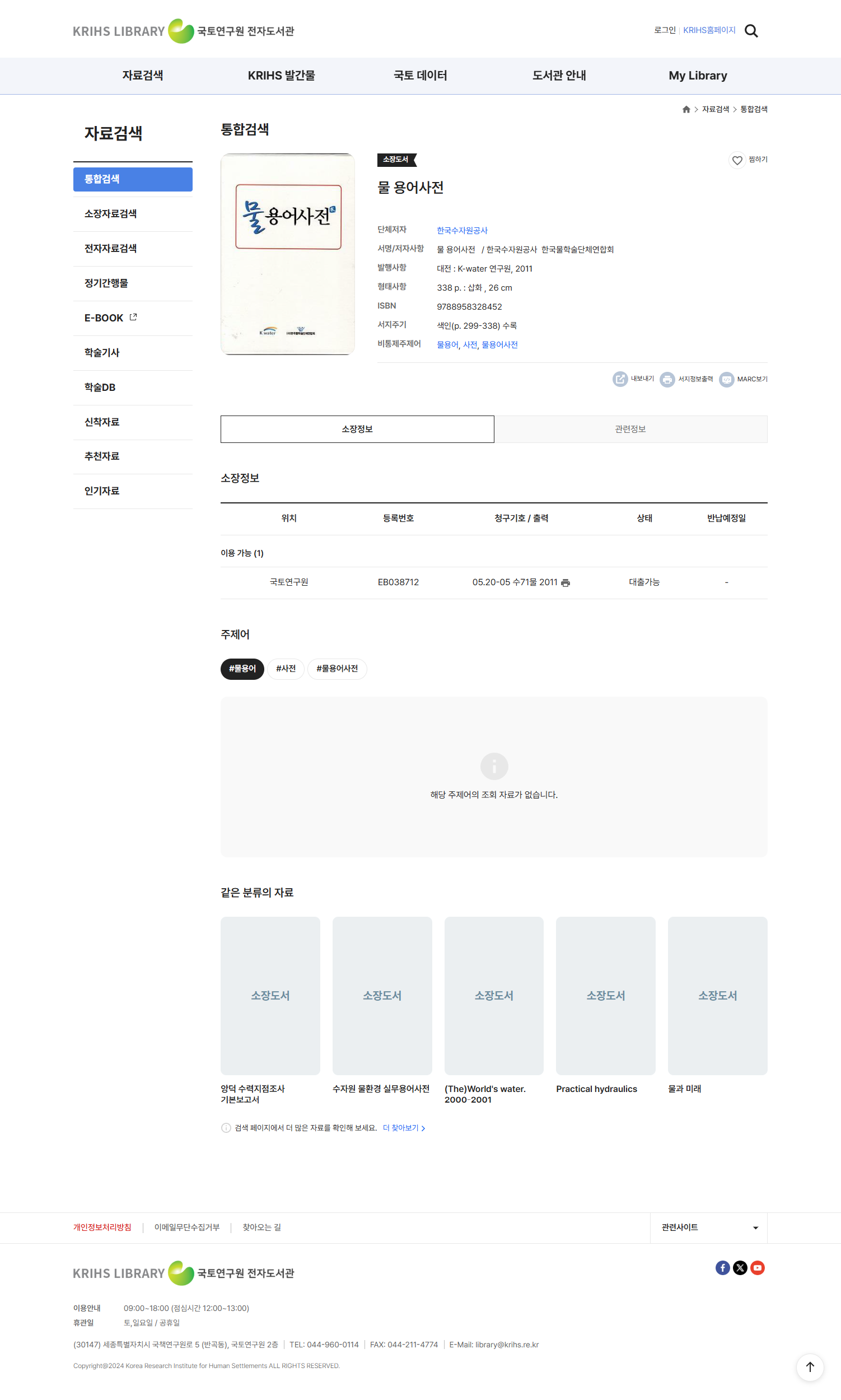 (20260106 main)국토연구원 전자도서관-소장자료 '물 용어사전'.png