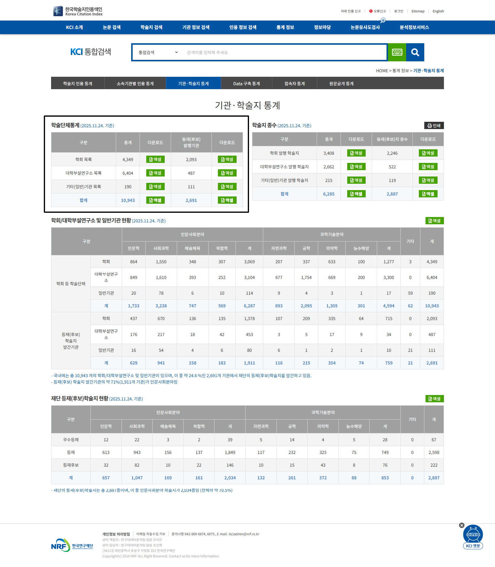 (20251124 main)한국학술지인용색인-통계 정보-기관·학술지 통계.png